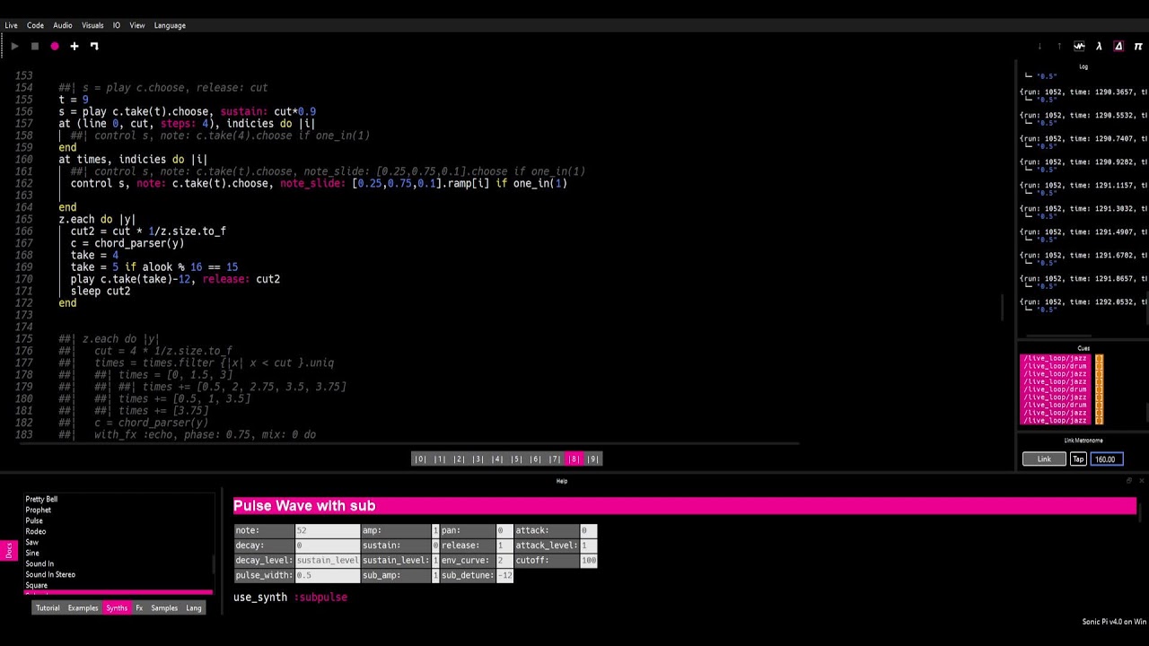 live_loop :drum, sync: :time do