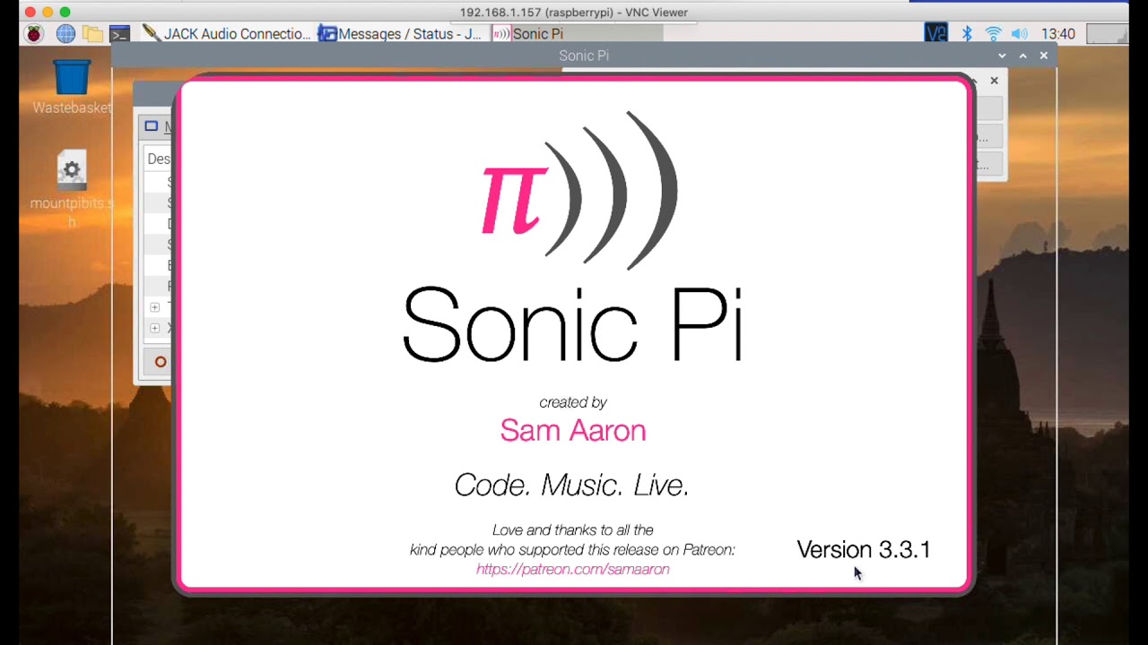 Today I installed Sonic Pi 3.3.1 on my Raspberry Pi. I’ve been using QJackCtl to start my jackd to run audio to a USB card, which worked well with SPi 3.2.
